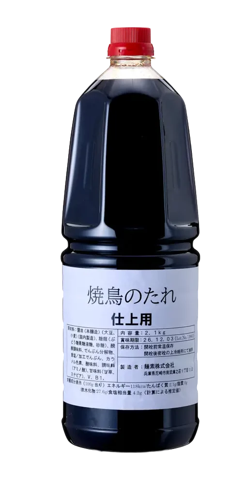 業務用商品紹介 麺素シリーズ めんつゆ たれ、つゆ、ソース ぽんず だしの素麺素シリーズ 麺素金ラベル18L 缶 『色がつかずに味がつく』、『うすめて味つけ3秒間』のキャッチフレーズと創業以来60年以上皆様に愛され、今も根強いファンのある商品です。 麺素金ラベル 1000ml PET 『色がつかずに味がつく』、『うすめて味つけ3秒間』のキャッチフレーズと創業以来60年以上皆様に愛され、今も根強いファンのある商品です。 麺素赤ラベル 1000ml PET 『色がつかずに味がつく』、『うすめて味つけ3秒間』のキャッチフレーズと創業以来60年以上皆様に愛され、今も根強いファンのある商品です。 めんつゆ 麺素ざるそば用S 18L 缶 麺素ざるそば用つゆのスタンダードタイプです。 創業以来60年以上皆様に愛されてきた商品です。 麺素ざるそば用S 1000ml PET 麺素ざるそば用つゆのスタンダードタイプです。 創業以来60年近く皆様に愛されてきた商品です。 冷し中華スープ 1800ml PET 【夏季限定商品】夏の定番。いろんな具材と組み合わせて、さっぱりとおいしくいただけます。 たれ、つゆ、ソース 焼鳥のたれ屋台用 18L 缶 焼鳥のたれのスタンダードタイプです。 焼鳥のたれ屋台用 2.1kg PET 焼鳥のたれのスタンダードタイプです。 焼鳥のタレ塩こうじ 1000ml PET 塩こうじが鶏肉を柔らかく仕上げ、鶏肉のうまみを引き出してくれます。 焼鳥のたれ仕上用 18L 缶 最後の仕上げにご利用いただきますと照り、つやのよい焼鳥に仕上がります。 焼鳥のたれ仕上用 2.1kg PET 最後の仕上げにご利用いただきますと照り、つやのよい焼鳥に仕上がります。 やきとりのたれ味噌味 25g 小袋 味噌の風味が肉の臭みを消しておいしい焼鳥がいただけます。 天ぷらのつゆ 1800ml PET あっさりとして少し甘みのあるてんぷらのつゆです。天丼などのお料理にもご利用できます。 餃子みそたれ 2kg PET ピリッと辛い唐辛子と味噌の風味が絶妙にあう餃子のみそだれです 餃子みそたれ 7g 小袋 ピリッと辛い唐辛子と味噌の風味が絶妙にあう餃子のみそだれです。 大阪どぶづけソース 25g 小袋 豚肉、牛肉、エビはもちろん、旬の魚介や野菜などの揚物をうま味が効いたやさしい甘さのソースにたっぷりとつけることで食材の味を活かし、よりおいしくお召し上がりいただけます。 天丼のたれ 1800ml PET 味自慢のお店ではたれ造りは秘中の秘。丼物の味つけはたれがポイントだからです。麺素「天丼のたれ」は具の持味を損なわないように少々甘辛く工夫をこらしてあります。 丼のたれ 1800ml PET 味自慢のお店ではたれ造りは秘中の秘。丼物の味つけはたれがポイントだからです。麺素「天丼のたれ」は具の持味を損なわないように少々甘辛く工夫をこらしてあります。 ぽんず うめぽんず 1000ml PET 紀州産の梅をたっぷり使い隠し味にすだちを入れることによってすっきりとさわやかな味に仕上げております。 ごまぽんず 1000ml PET ゴマのコクとポン酢本来のさわやかな酸味を絶妙なバランスで調和させ飽きのこない味に仕上げております。 ゆずぽんず 1000ml PET ゆず果汁をたっぷり使用し、塩にこだわったシンプルながらもあきのこない香り豊かでまろやかな味に仕上げております。