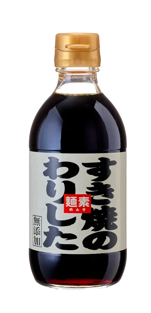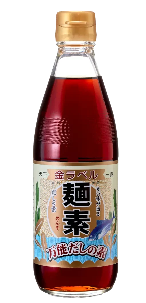 小売用商品紹介 めんつゆ ぽんず・鍋用だし やきとりのたれ めんつゆ 麺素金ラベル 360ml 瓶 『色がつかずに味がつく』、『うすめて味つけ3秒間』のキャッチフレーズと創業以来60年以上皆様に愛され、今も根強いファンのある商品です。 麺素金ラベル 1000ml PET 『色がつかずに味がつく』、『うすめて味つけ3秒間』のキャッチフレーズと創業以来60年以上皆様に愛され、今も根強いファンのある商品です。 めんつゆ無添加2倍濃縮 300ml 瓶 天然のだしをたっぷり使った自然なおいしさの商品です。味に深みとのびがあり、お勧めの一品です。 煮物にも使えて便利な商品です。 麺素そばつゆ 300ml 瓶 だしの深みと甘みのあるまったりとした味が特徴のそばつゆです。 そばだけでなく煮物にもお使いいただけます。 【夏季限定商品】 冷し中華スープ 180ml瓶 夏の定番。いろんな具材と組み合わせて、さっぱりとおいしくいただけます。 めんつゆ(豆乳入り) 300ml 瓶 国内産丸大豆から作った豆乳を使用。 温、冷どちらでもお使いいただけます。 まろやかな豆乳の風味をお楽しみください。 ぽんず・鍋用だし うめぽんず 250ml 瓶 紀州産の梅をたっぷり使い隠し味にすだちを入れることによってすっきりとさわやかな味に仕上げております。 ごまぽんず 250ml 瓶 ゴマのコクとポン酢本来のさわやかな酸味を絶妙なバランスで調和させ飽きのこない味に仕上げております。 ゆずぽんず 250ml 瓶 ゆず果汁をたっぷり使用し、塩にこだわったシンプルながらもあきのこない香り豊かでまろやかな味に仕上げております。 鴨鍋のだし 180g PET 少し甘口のだしが脂の乗った鴨肉と合い、脂のしつこさを感じさせない味です。 リニューアルしました! すき焼きのわりした 300ml 瓶 みりんをふんだんに使用した柔らかな味わいのわりしたです。煮物などにご利用できます。 やきとりのたれ やきとりのたれ 醤油味 180g 瓶 醤油味風味のつけて焼いてもからめてもおいしい焼き鳥のたれです。 ご家庭で手軽にやきとりの味を楽しめます。